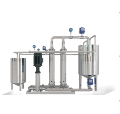一个或多个模块被合并到一个过滤系统中。循环泵提供循环流量,进料泵提供过滤压力。控制流量或压力,滤液从模块中流出。